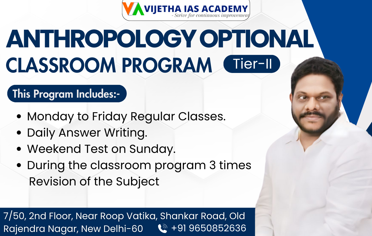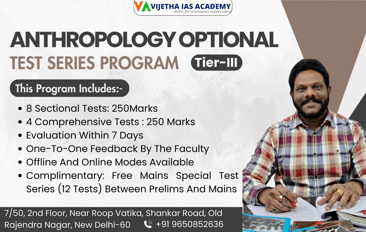 Looking for the best coaching for Anthropology Optional? At Vijetha IAS Academy, we offer comprehensive Anthropology Optional UPSC courses designed to help you excel in your IAS journey. Whether you're a beginner or revising the syllabus, our expert-led Anthropology IAS program is tailored to meet your needs.